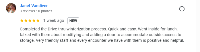 The Pull-Thru Winterization & Maintenance Event is open to everyone, no matter where you purchased your camper. This year, more than 20 percent of attendees were new customers who bought their RV elsewhere but have since made Tri City RV their home for RV service in Michigan.