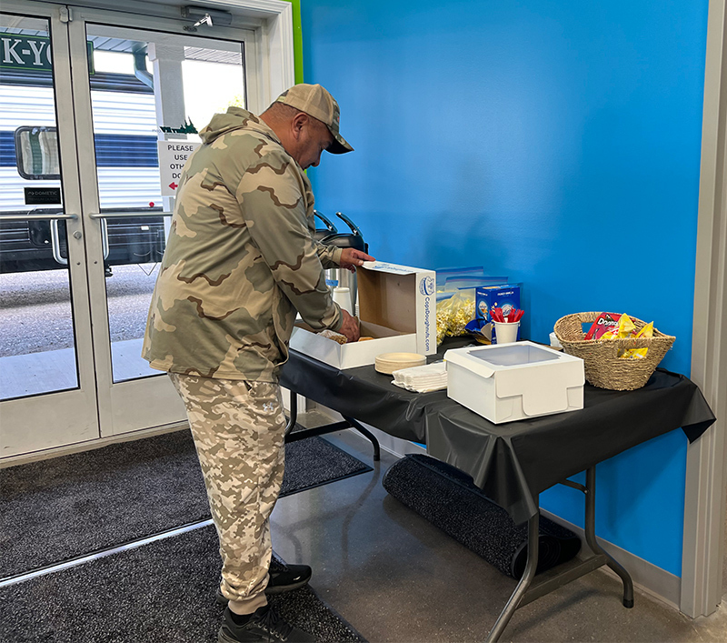 Meanwhile, guests can relax inside our parts and accessory showroom, enjoying complimentary breakfast, lunch, or dinner while browsing new products and RV accessories. Customers can also shop our current RV inventory and take advantage of special event-only discounts.
